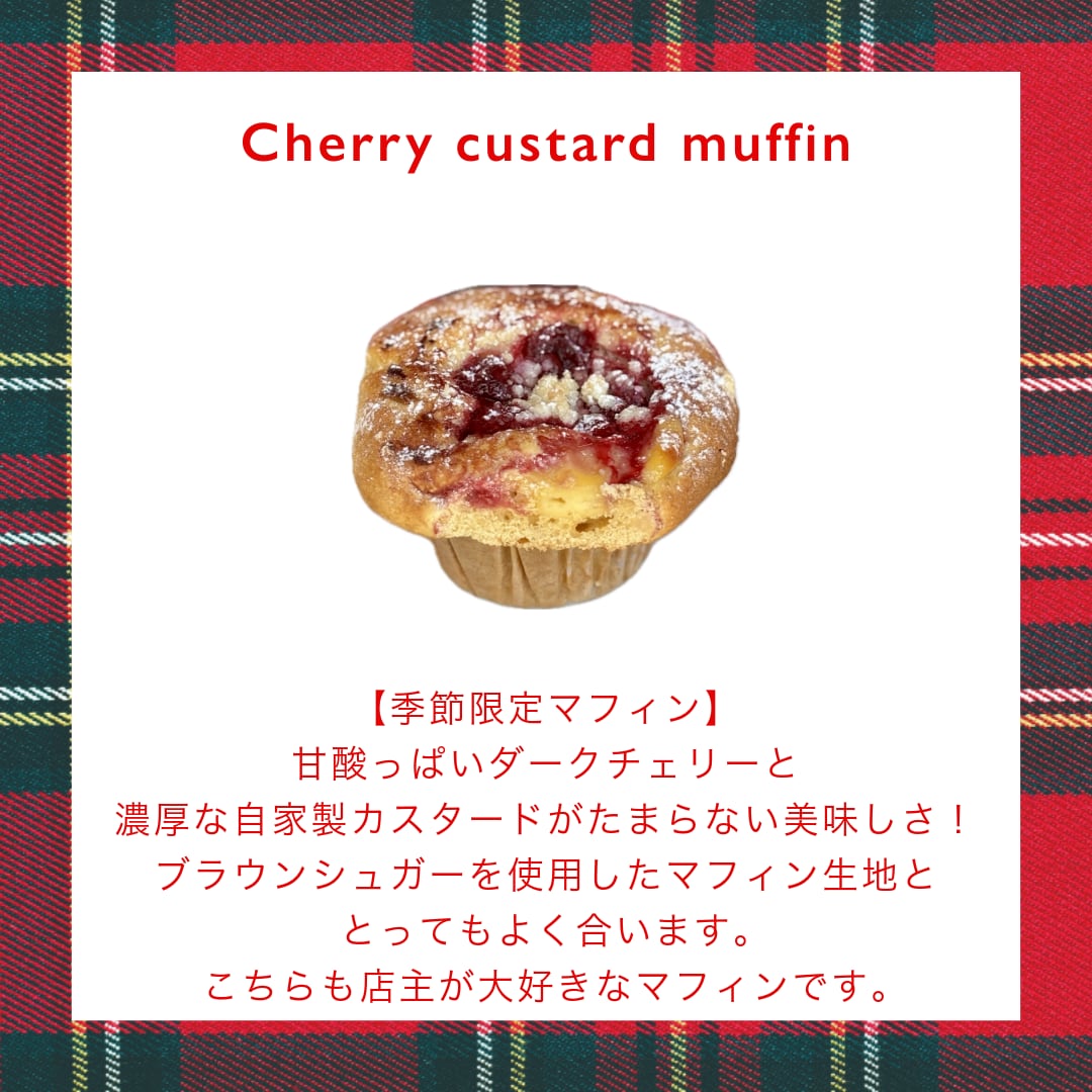 自家製の濃厚カスタードクリームと、特選のモレロチェリーを贅沢に使用し、しっとりとした生地に焼き上げました。チェリーの豊かな甘さとほのかな酸味が融合し、一口ごとに心温まる美味しさが広がります!